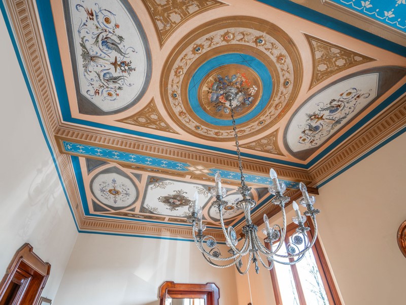 Gli affreschi sui soffitti, i pavimenti alla veneziana e le porte originali restaurate dialogano con una nuova distribuzione degli spazi, pensata per vivere con il comfort di oggi senza perdere il fascino di ieri.