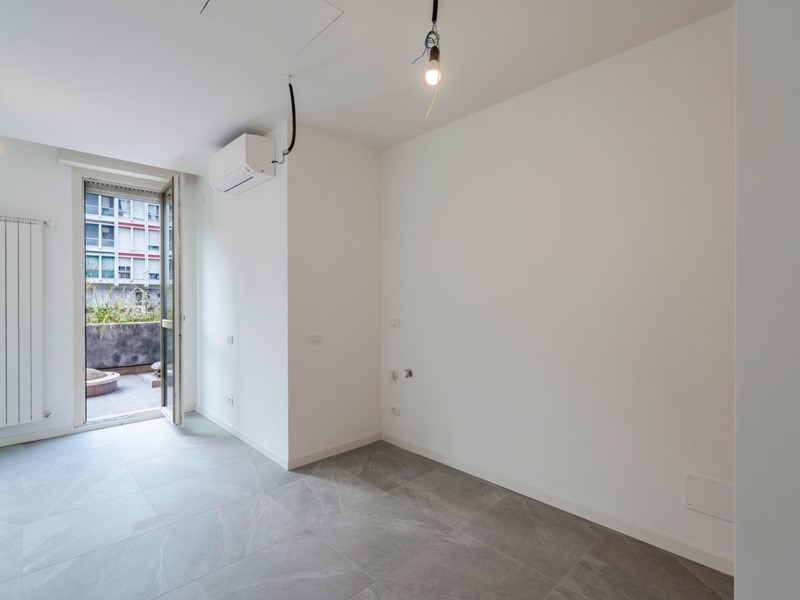 La soluzione è posta al secondo piano e servita da ascensore ed è composta da: ingresso, ampio soggiorno con cucina a vista ed affaccio sul terrazzo di 46 mq, bagno finestrato con doccia, camera matrimoniale, disimpegno, seconda camera e comodo ripostiglio.