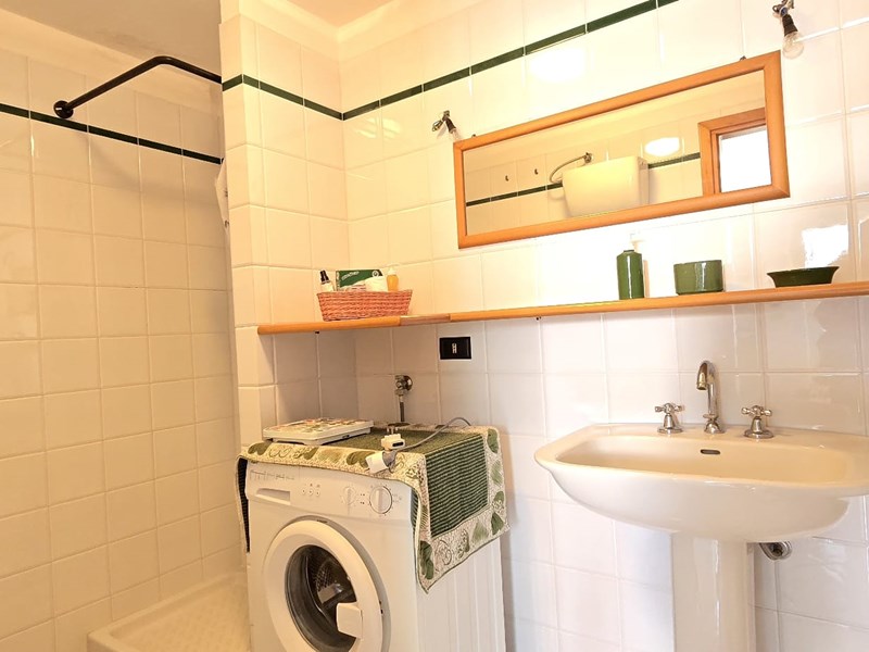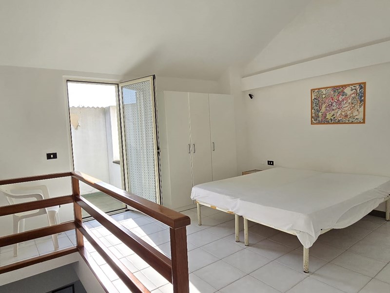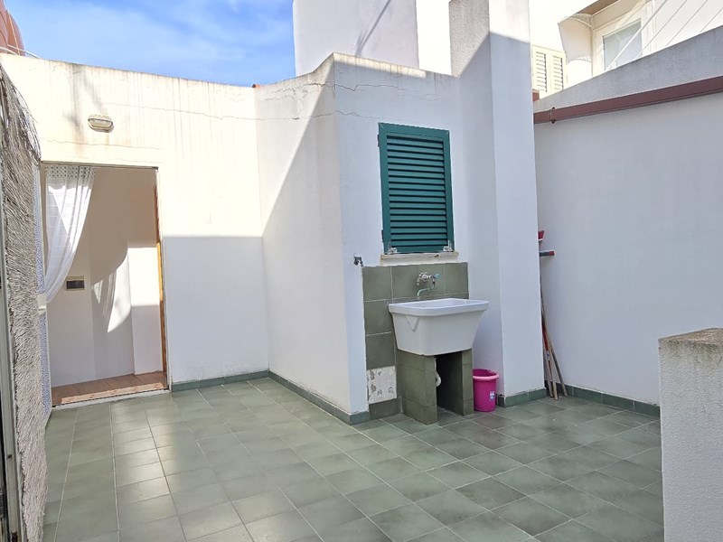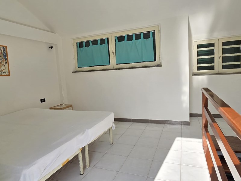 una zona con cucina e bagno con doccia – ampia terrazza interna e una seconda zona con ampia cucina abitabile – bagno con doccia e scala che da accesso al piano superiore, dove troviamo una spaziosa camera da letto con terrazzino.