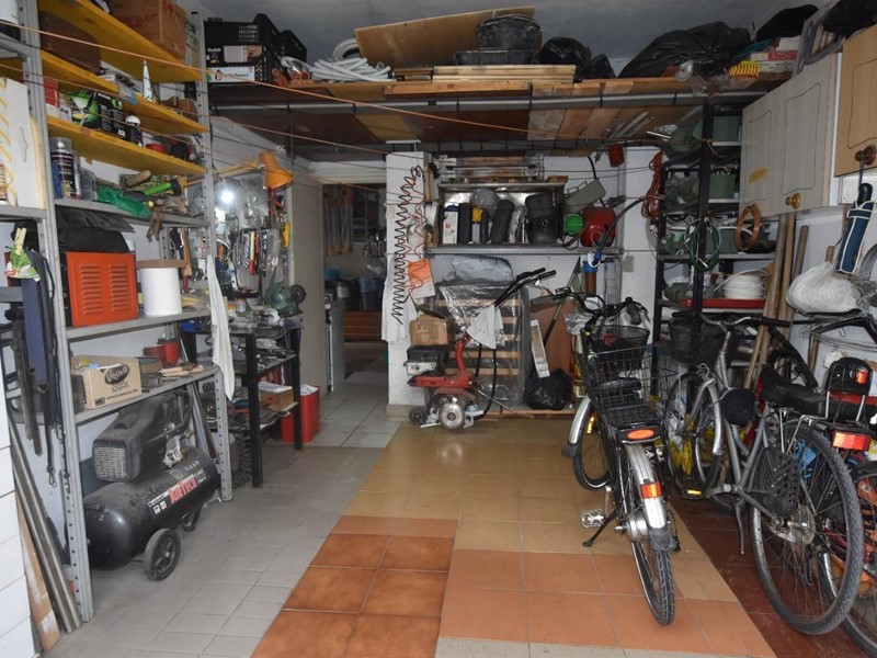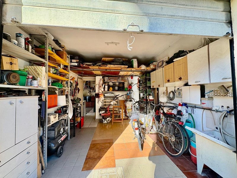Al piano terra, collegati direttamente all’edificio, sono presenti due garage, provvisti di saracinesca motorizzata e impianto di depurazione dell’acqua. A completamento della proprietà, un piccolo terreno di circa 34 mq utilizzato come orto.
