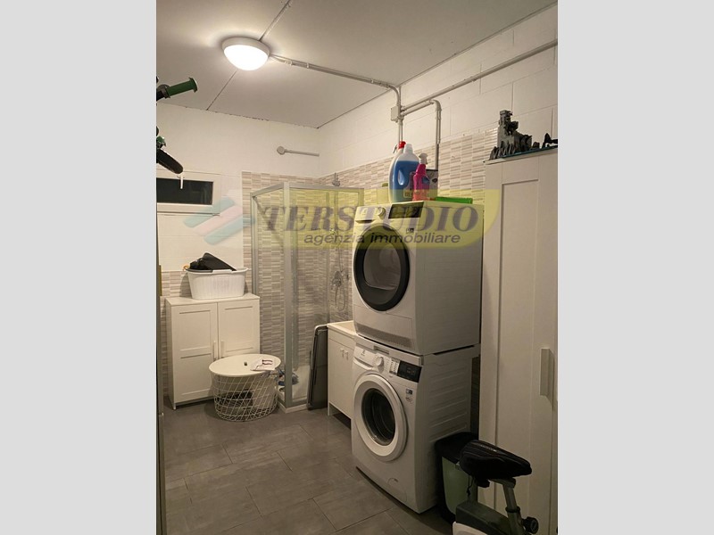 La soluzione comprende una comoda lavanderia con doccia e un'ampia autorimessa al piano interrato.