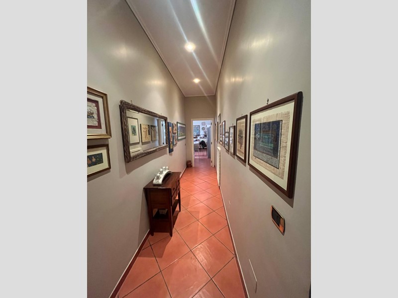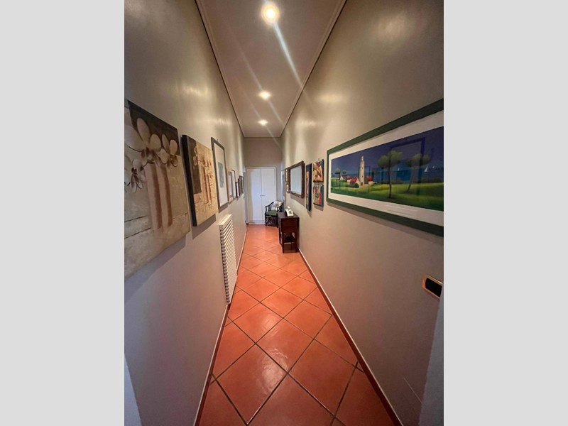 Un importante ingresso introduce al salone triplo con camino, vero cuore rappresentativo della dimora: qui la luce naturale, che filtra generosa dalle grandi aperture, avvolge gli ambienti creando riflessi caldi e raffinati, ideali per accogliere e vivere momenti di autentico piacere.