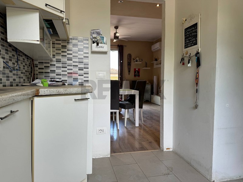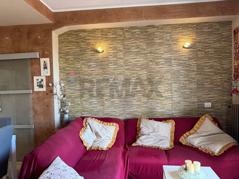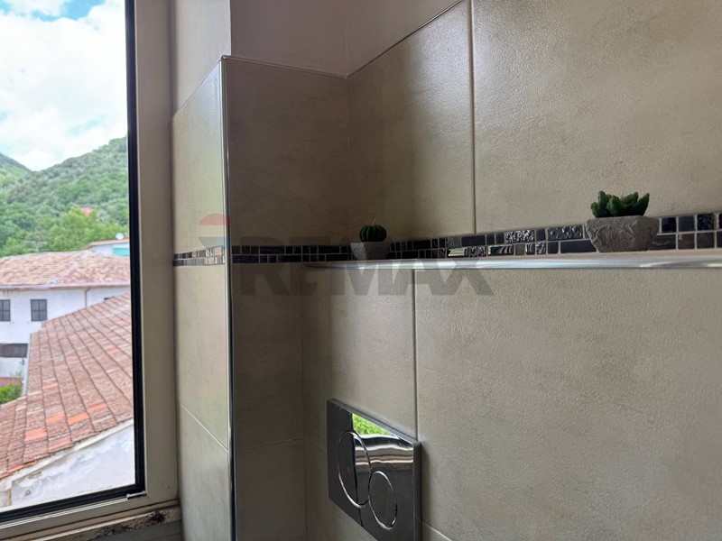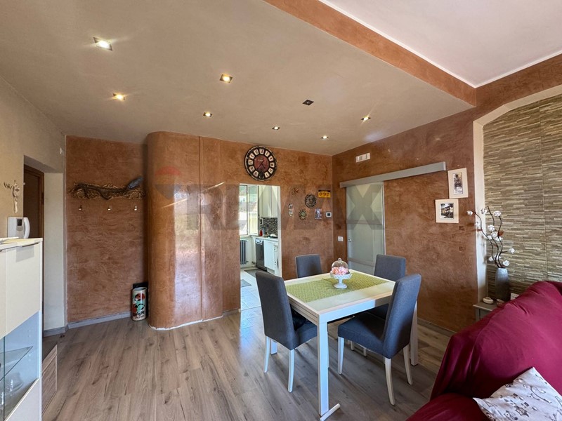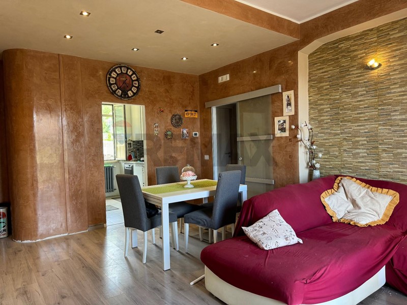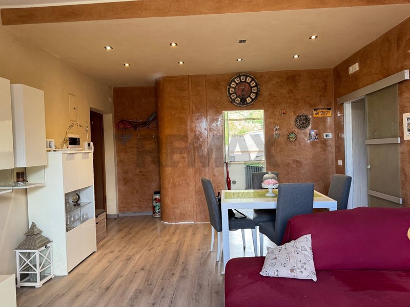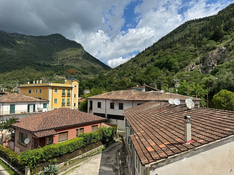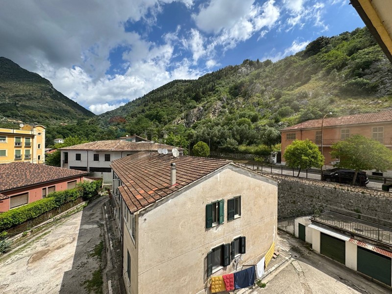 La casa, recentemente ristrutturata (pavimenti, rivestimenti, riscaldamento autonomo, climatizzatore di 12.000 btu, impianti idraulici) è cosi composta: ingresso in piccolo disimpegno, ampio salone con accesso al balcone terrazzato vista montagne, cucina abitabile con dispensa. Da una porta di vetro temperato si accede alla zona notte tramite un disimpegno, e da quest'ultimo si accede al sottotetto abitabile di circa 40 Mq con un'altezza al colmo di 2 mt, al quale sono stati già riportati gli impianti per la realizzazione di una camera con bagno.