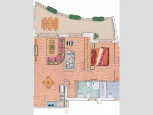 Splendido attico abitativo di 3 locali e 2 bagni, con una superficie di 80 mq, oltre ripostiglio , balcone abitabile e solarium di 73mq, situato nel complesso Trentastelle.
