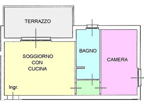 L'appartamento si compone di una zona living interamente affacciata sul terrazzo, piacevole e spazioso, rivolto a ovest. Ampia camera matrimoniale, bagno.