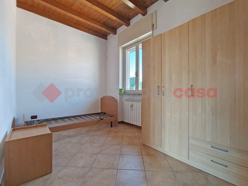 In centro paese, comodo per tutti i servizi, proponiamo appartamento posto al primo e ultimo piano. L'appartamento, disposto su due livelli, ha accesso indipendente dalla scala esterna, con ingresso sul soggiorno con cucina a vista, ripostiglio e bagno al piano primo; Al piano secondo e ultimo mansardato, troviamo due ampie camere da letto ed un secondo bagno. Ristrutturato circa dieci anni fa', è già pronto e subito disponibile, ottim anche ad uso investimento, con riscaldamento autonomo e senza spese condominiali. Completo di box auto doppio in lunghezza. Disponibile per la vendita anche il bilocale a piano terra.