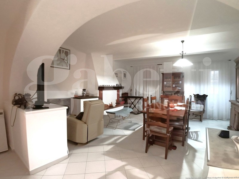 Il soggiorno è doppio e dotato di camino, perfetto per trascorrere piacevoli serate in compagnia.