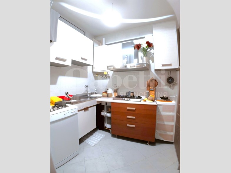 Il cucinotto e il bagno finestrato con doccia, completano la zona giorno.