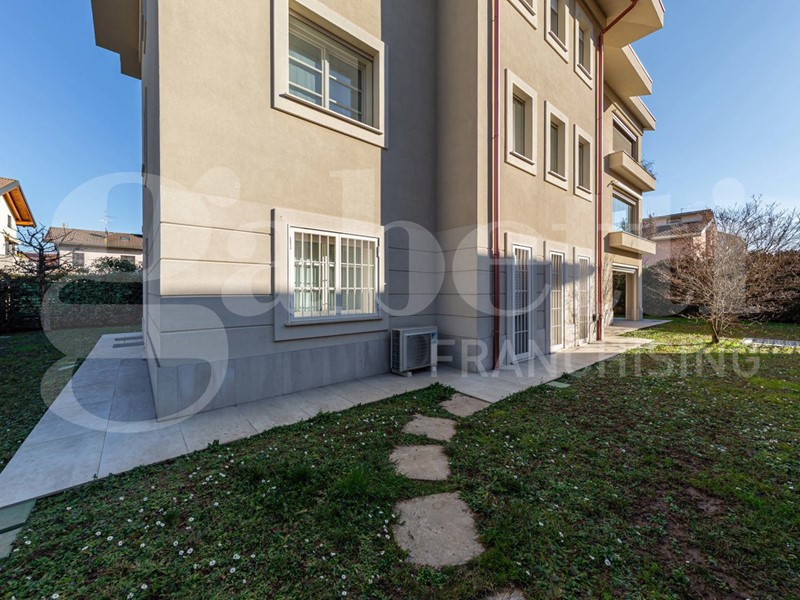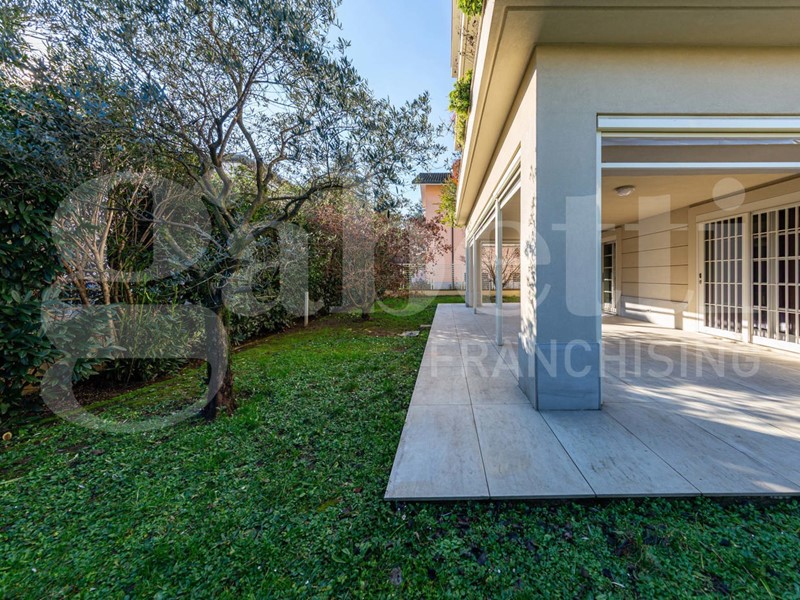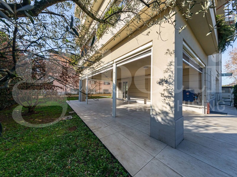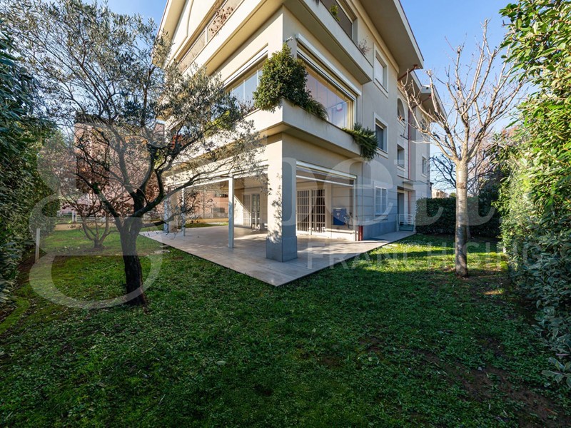 Splendido appartamento ad uso abitativo in mini palazzina servita da ascensore di soli 3 appartamenti, garantendo privacy e tranquillità. L'immobile, libero su 4 lati, risulta luminoso e ben distribuito, composto da soggiorno con cucina living, 3 ampie camere, doppi servizi, ripostiglio e disimpegno, oltre ad un meraviglioso loggiato di 40 mq. su giardino esclusivo di circa 390 mq. che offre uno spazio esterno ideale per momenti di relax.
