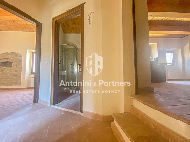 Esternamente presenta ampie facciate in pietra naturale un''elegante scalinata esterna con ballatoio e portone antico. Internamente: pavimenti in cotto artigianale, porte in legno pregiato, soffitti di travi e pianelle e camino nella zona living.