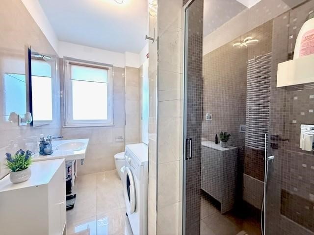 L’appartamento è costruito in BIO-EDILIZIA (X-LAM) è dotato di: riscaldamento e raffreddamento a pavimento con impianto CLIVET con cronotermostato ambiente per ciascun vano, isolamento termico con cappotto interno ed esterno, solare termico (pannello solare per acqua calda),videocitofono, domotica, sistema di riciclo aria, infissi con triplo vetro con apertura anche a ribalta, portone blindato elettronico, sistema di allarme volumetrico e perimetrale a finestre e porte con controllo anche da remoto.