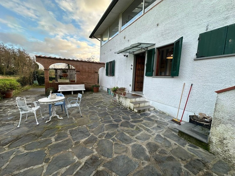 Completano l'immobile: corte piastrellata, giardino privato e due posti auto.