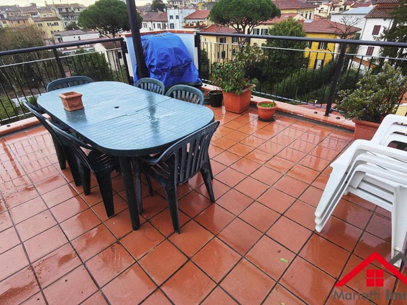 Una scala interna conduce a una soffitta utile e a una terrazza di 24 mq, vero capolavoro della proprietà, che offre una vista libera sui tetti di Pisa, in uno sguardo che spazia dal mare alle montagne.