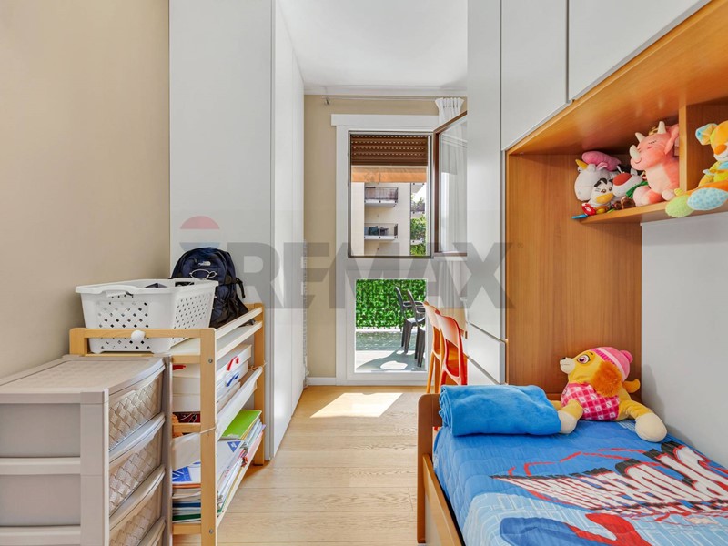 Il doppio affaccio su cortile e giardino condominiali dona tranquillità e luminosità in tutte le stanze.