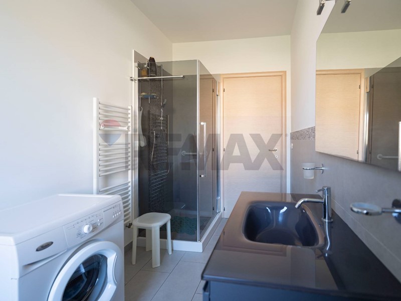 - un bagno moderno con ampia doccia e attacco per lavatrice