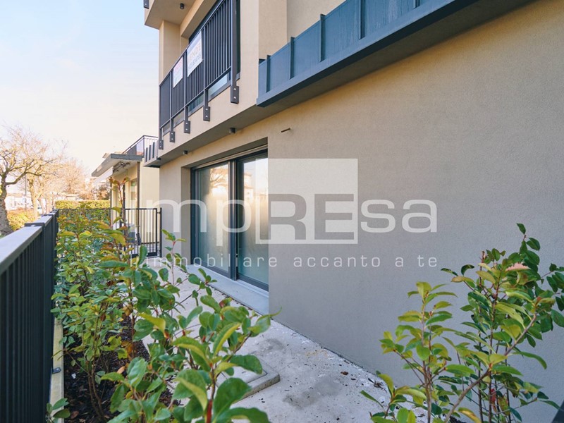 Vi proponiamo un prestigioso e moderno appartamento posto al piano terra su una palazzina di sole tre unità. L'immobile è dotato di ampia e luminosa zona giorno di oltre 45 mq, tre camere da letto e da due bagni entrambi finestrati, ampio giardino esposto ad est/sud e patio esposto ad ovest. Garage e due posti auto scoperti di proprietà.