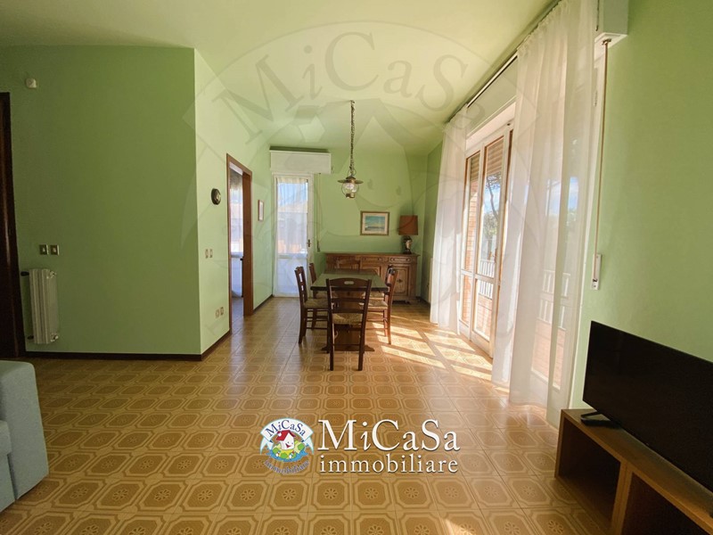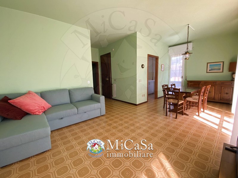 L'immobile si compone di un ingresso che conduce a un luminoso soggiorno con divano letto e cucinotto, con accesso a un terrazzo angolare perfetto per momenti di relax all'aperto. La zona notte comprende due camere matrimoniali, una camera singola e un bagno con box doccia, oltre a un secondo bagno di servizio con ripostiglio. Un ulteriore terrazzo nella zona notte offre uno spazio aggiuntivo per godere dell'aria marina.