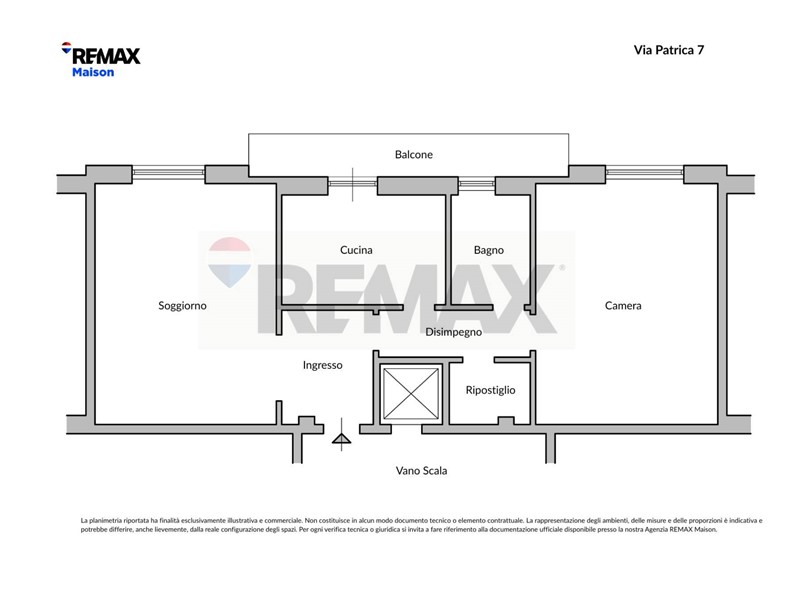 Completano la distribuzione un disimpegno, un ampio bagno finestrato e un comodo ripostiglio, elementi che contribuiscono alla funzionalità complessiva dellabitazione.