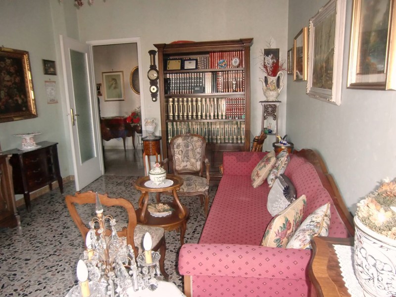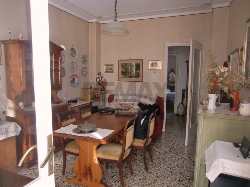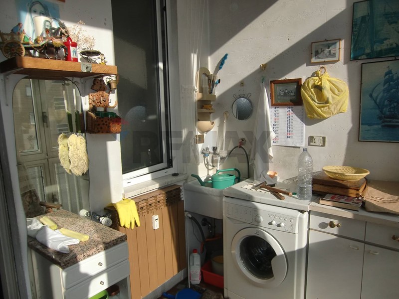 L'appartamento è composto da ampio ingresso, tinello con uscita su balcone verandato, cucinino con finestra, camera attualmente adibita a soggiorno con porta finestra che accede al balcone lato piazza Caio Maio, camera da letto matrimoniale, bagno finestrato e ripostiglio.