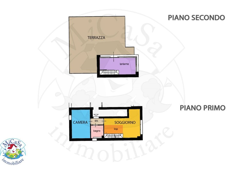 - Al piano soppalcato: salottino con ampie vetrate che si affacciano su una splendida terrazza vista mare