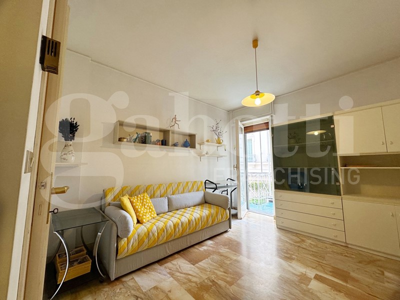 L'alloggio si apre su un ampio ingresso funzionale, arricchito da una comoda armadiatura a muro, perfetta per ottimizzare gli spazi. La zona giorno, intima e luminosa, è arredata con divano letto, rendendo l'ambiente versatile e facilmente adattabile alle esigenze degli ospiti. Il cucinino separato assicura praticità e ordine, mentre l'ampio bagno con vasca completa la proprietà offrendo comfort e funzionalità.