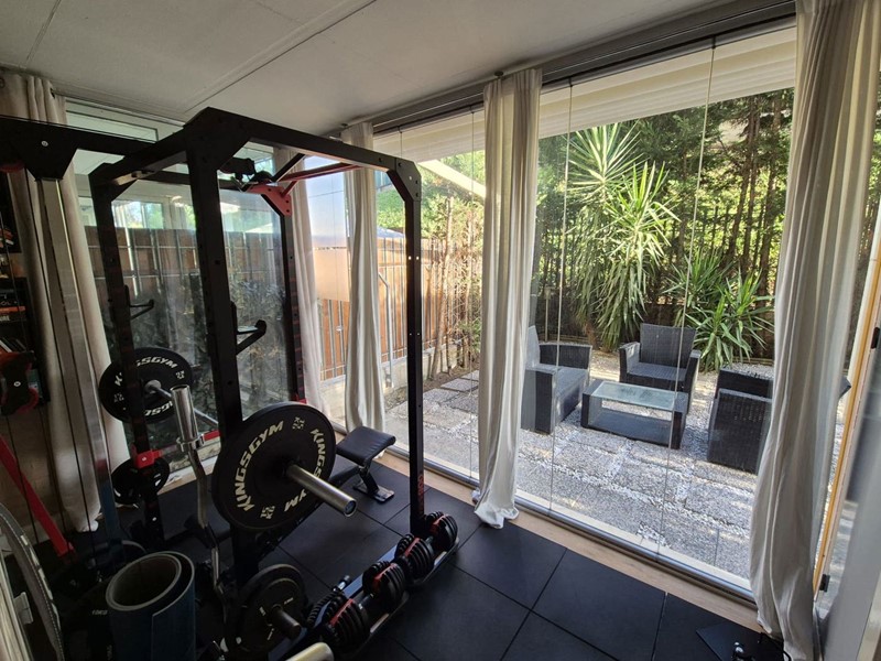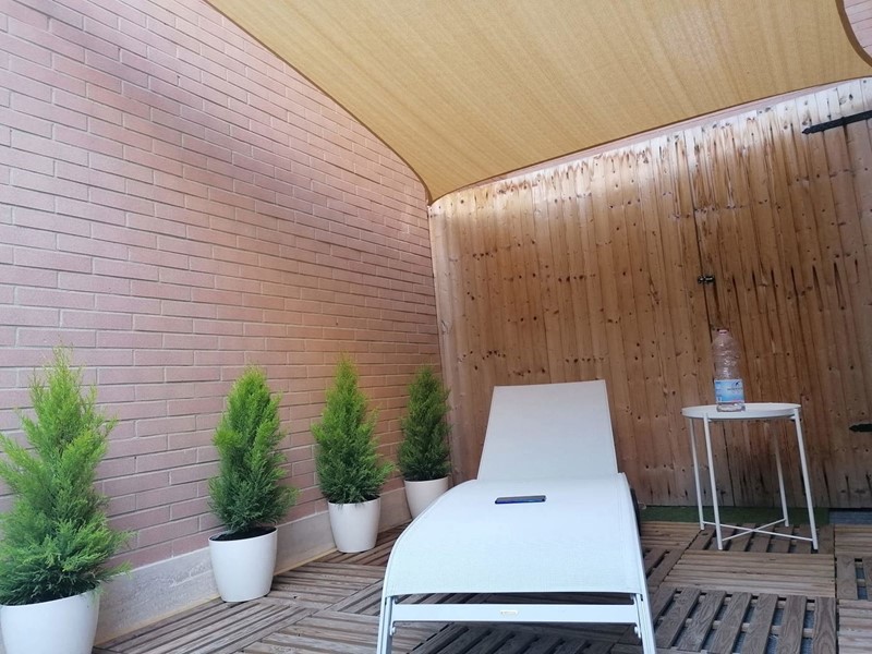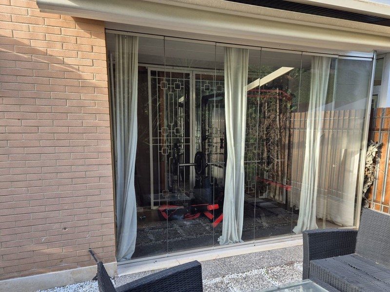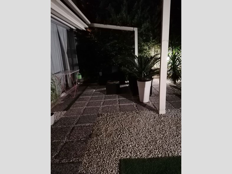 L'appartamento, dagli spazi funzionali e confortevoli, è composto da soggiorno/notte con ambiente cucina suddiviso e schermato da parete di vetro, servizio finestrato con doccia, ripostiglio esterno, patio verandato con vetrate panoramiche scorrevoli e ampio giardino privato con ottima esposizione solare e privacy garantita dalla recinzione e dalla vegetazione, in parte piastrellato e decorato con sassi e prato sintetico e impreziosito da una Pergotenda Gibus 4x3, uno spazio da vivere e sfruttare sia come angolo relax che come ambiente dedicato ai momenti di convivialità, soprattutto nelle belle giornate primaverili e nelle calde sere d'estate. Completa la proprietà un indispensabile e comodo posto auto.