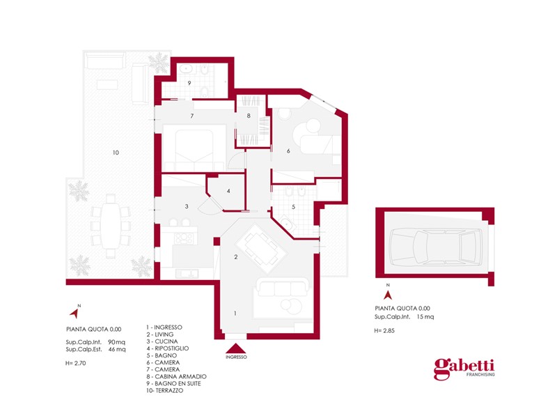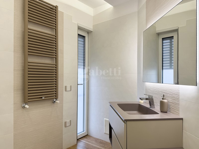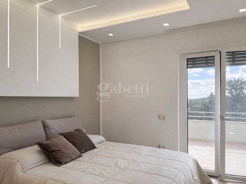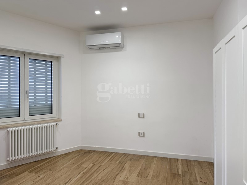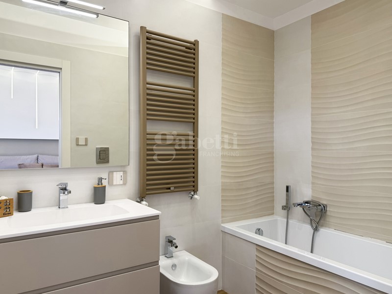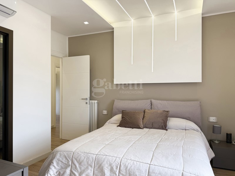 La zona notte ospita una camera matrimoniale con bagno en suite e cabina armadio, un ambiente elegante e riservato, affiancata da una seconda camera versatile e da un ulteriore bagno, entrambi rifiniti con materiali attuali e di qualità.