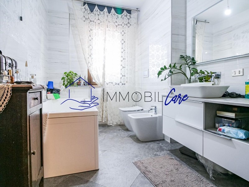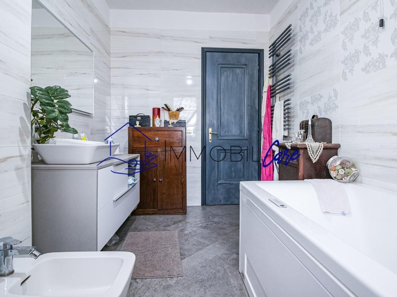 Un comodo disimpegno introduce alla zona notte del piano principale, composta da due spaziose camere matrimoniali, due bagni – uno finestrato e uno areato, uno con vasca l'altro dotato di box doccia pratico.