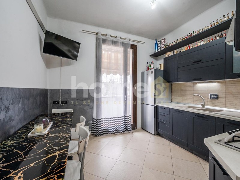 Il soggiorno accogliente e la cucina separata con balcone garantiscono funzionalità e vivibilità quotidiana, mentre le due camere da letto ampie offrono spazi confortevoli e facilmente personalizzabili.