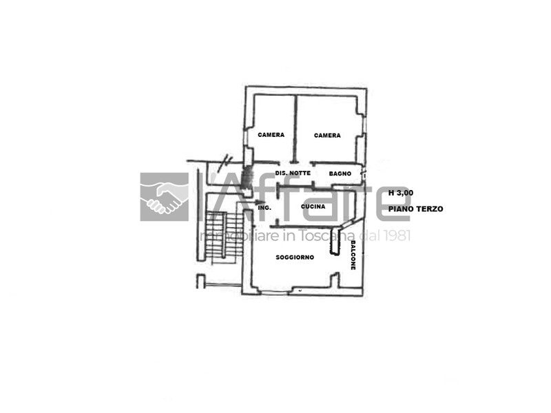 PIEVE A NIEVOLE - NOSTRA ESCLUSIVA - ZONA MISERICORDIA - UBICATO IN AREA BEN SERVITA - VENDESI APPARTAMENTO MOLTO LUMINOSO, LIBERO 3 LATI, posto al TERZO ed ULTIMO PIANO SENZA ASCENSORE, ACCESSORIATO DI POSTO AUTO ESCLUSIVO, OLTRE GARAGE e CANTINA FINESTRATA FUORI TERRA. Composto da INGRESSO CON DISIMPEGNO, SOGGIORNO CON ACCESSO AL BALCONE, CUCINA ABITABILE, DISIMPEGNO NOTTE, 2 CAMERE MATRIMONIALI E BAGNO CON VASCA. BUONE CONDIZIONI, TERMO AUTONOMO. Per motivi di riservatezza, la posizione geografica inserita sul presente annuncio, indica esclusivamente l'area di ubicazione dell'immobile e non l'indirizzo esatto. Le metrature inserite sono indicative e non effettive. Rich. Euro 115.000 - Rif. 13579A - Ag. l'Affare Montecatini Terme 0572 773005 - www.laffare.it - montecatini@laffare.it