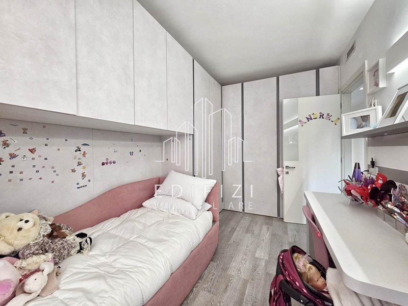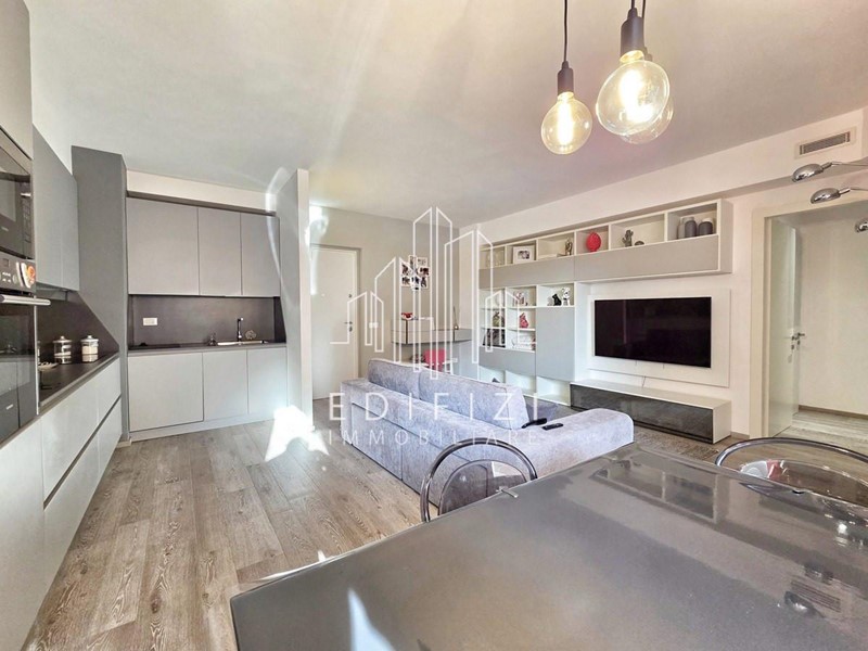 L'appartamento è composto da ampia zona giorno, prospiciente profonda terrazza e con cucina a vista, zona notte con due camere da letto, entrambe servite da ampio balcone, comodo ripostiglio e due bagni, ciascuno con doccia e finestra.