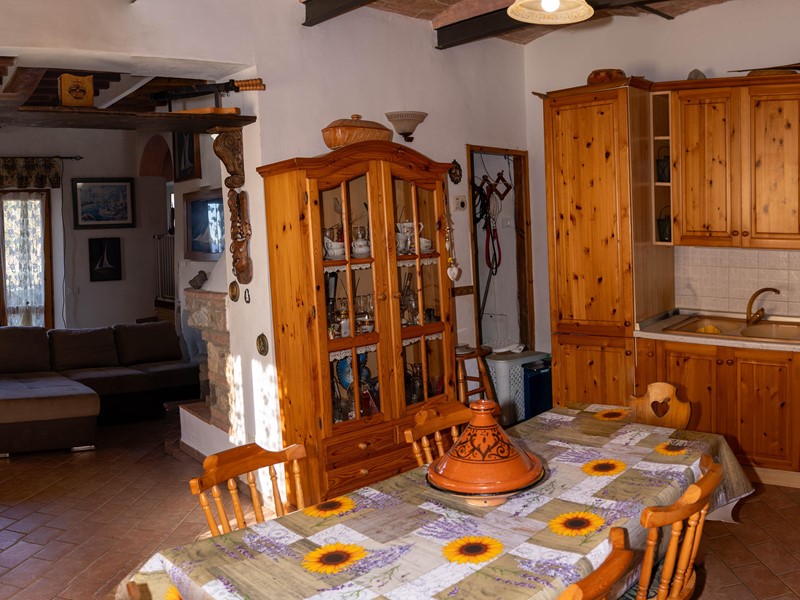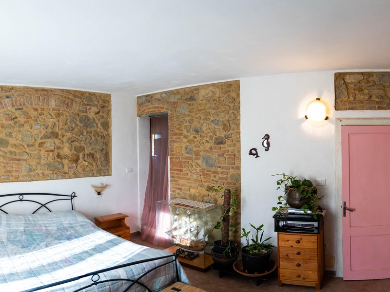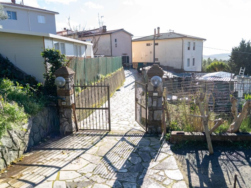 Pastina (Comune di Santa Luce). Casa indipendente su tre lati, tipologia terratetto con superficie abitativa di circa 100 mq. e di altrettanta metratura il resede esclusivo pertinenziale. Vista panoramica e ariosa in direzione mare. Si accede alla proprietà da spazio privato lastricato per consentire il passaggio e la sosta di varie auto, chiuso da cancello con apertura da casa; è presente un altro cancello dalla parte opposta rispetto a questo. Ristrutturata nel 2007 in stile toscano, comprende al piano terra: salotto con camino, tinello con ripostiglio. Da scala interna accediamo al piano notte con due camere matrimoniali, piccolo ripostiglio e bagno. Esternamente compresi nella vendita troviamo: 1) locale magazzino di 12 mq con proprio spazio di pertinenza 2) altro locale di sgombero di mq 10 3) terreno attiguo alla proprietà di mq 550, recintato, dove insistono varie piante ornamentali e da frutto (albicocco, melograno, pesco, melo, noce, mirto, limoni, viti ecc.). Termo singolo a metano, infissi in legno, impianto di illuminazione esterno. Tutto il contesto, l'abitazione ci portano ad una tipica realtà toscana di campagna, il calore del camino, le pareti in pietra, i particolari delle rifiniture. Soddisfa esigenze abitative residenziali che vacanziere (specie utenza straniera).