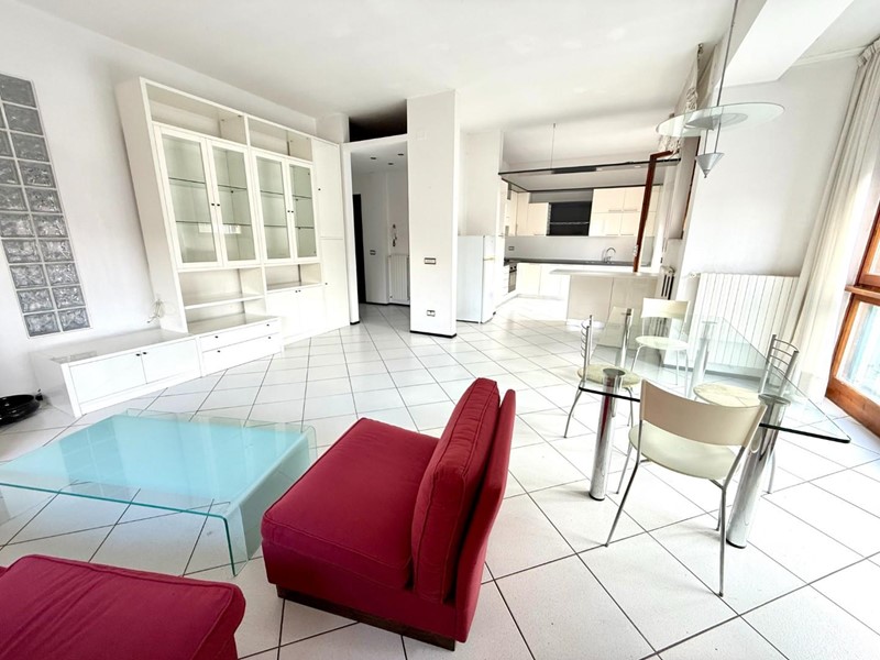 La zona giorno è composta da un ampio e luminosissimo soggiorno con zona pranzo e cucina open space, con accesso al balcone.