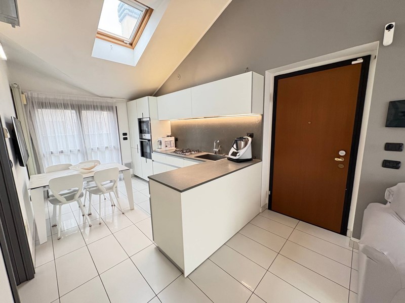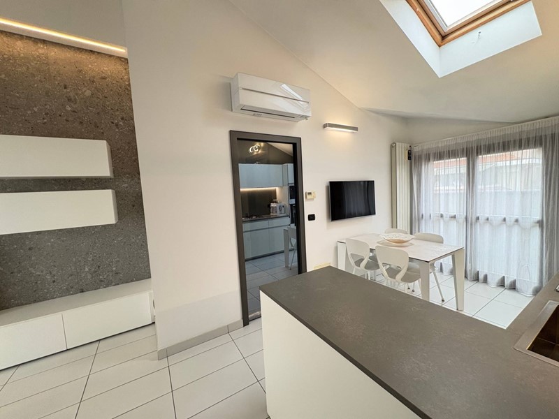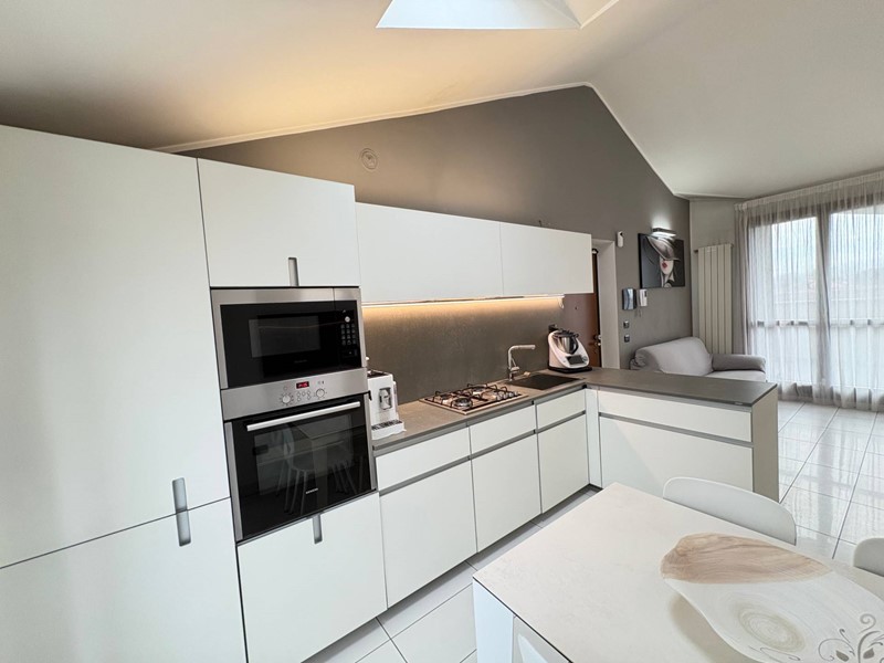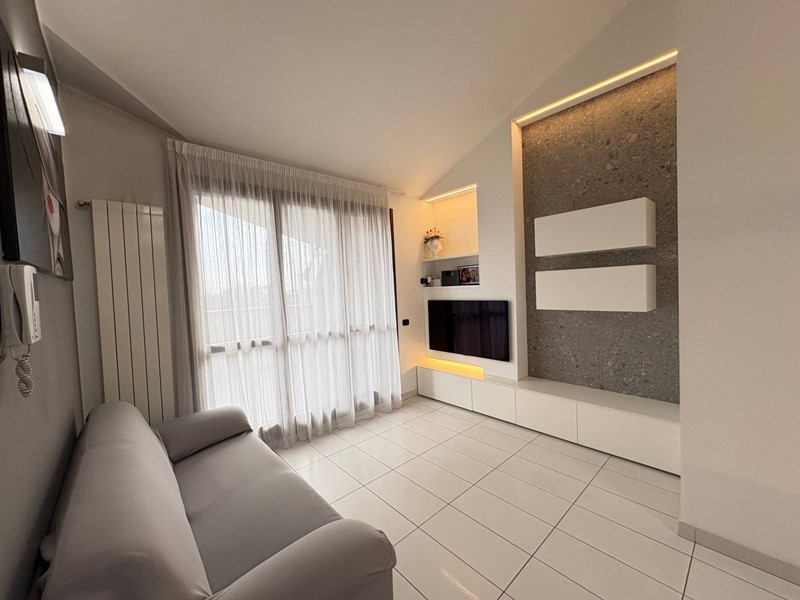 In vic. centro paese, inserito in contesto condominiale del 2008, proponiamo favoloso appartamento al piano ultimo servito da ascensore, composto da ingresso, sala con cucina resa a vista, due camere da letto, bagno e cabina armadio, oltre 2 terrazzi e cantina. Possibilità del box (costo a parte). L'immobile si presenta in eccezionali condizioni di mantenimento e rifinito con materiali di alta gamma. Termoautonomo, climatizzato con impianto Mitsubishi, cabina armadio, impianto di pannelli solari per produzione energia elettrica, predisposizione allarme filare e tanto altro. Da vedere! ROGITO FINE FEBBRAIO 2027 (CONSEGNA 45 GIORNI DOPO IL ROGITO).