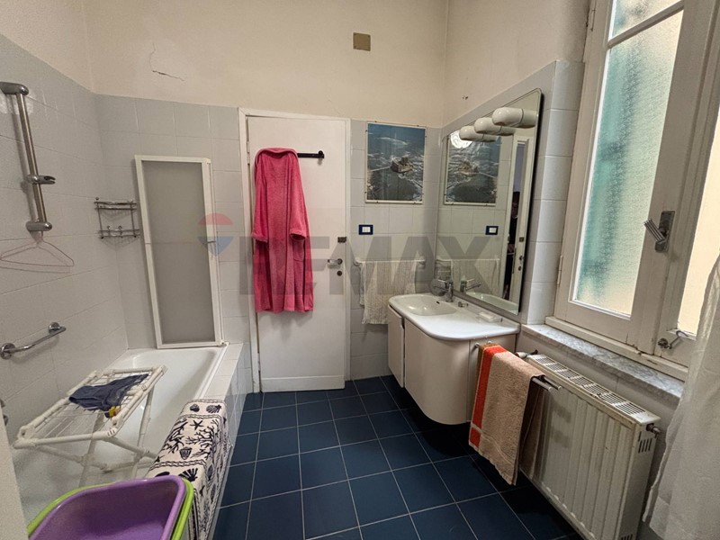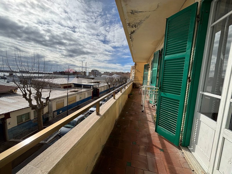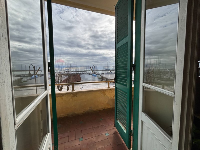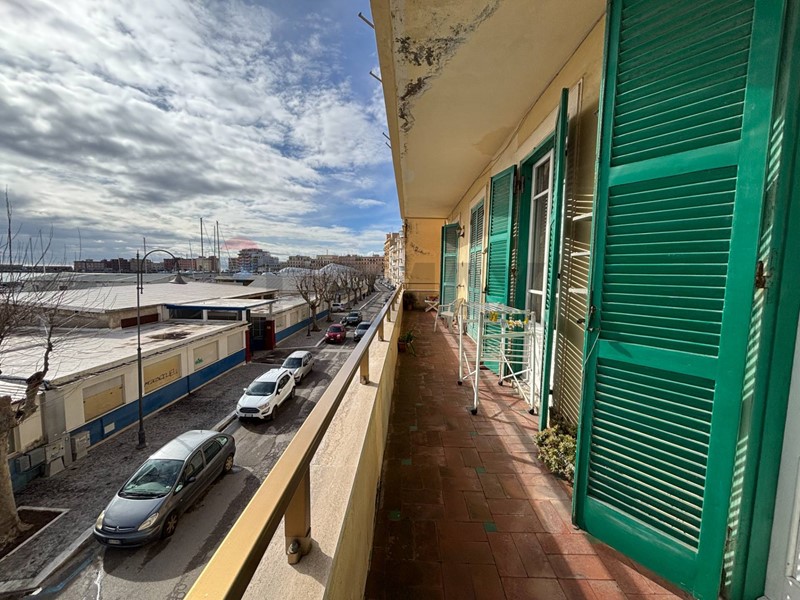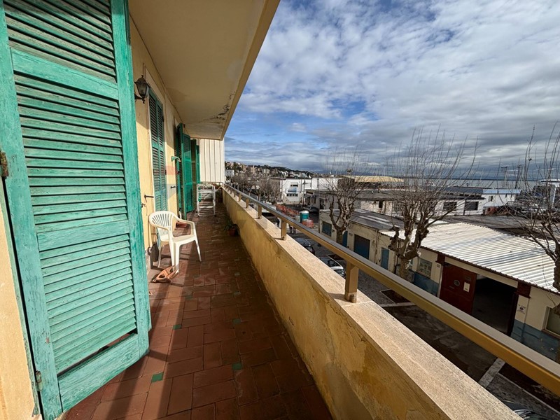 entriamo direttamente in un disimpegno comodo, dove a sinistra troviamo una stanzetta con bagno entrambe con finestra (un tempo era denominata la stanza della tata), un corridoio trasversale parallelo al mare ci divide la buonissima distribuzione che segue con sala ampia con camino con due finestre, due camere, tutte con affaccio sul Porto e sul mare con Vista Circeo godibile grazie al suo comodissimo terrazzo di 18 mq (1,5 x 12), la terza camera matrimoniale è laterale, cucina abitabile che si affaccia nel cortile interno, un piccolo e comodo vano lavanderia (dove è ubicata la lavatrice e si potrebbe aggiungere in verticale anche una asciugatrice), ed un secondo bagno con finestra completa la proprietà.
