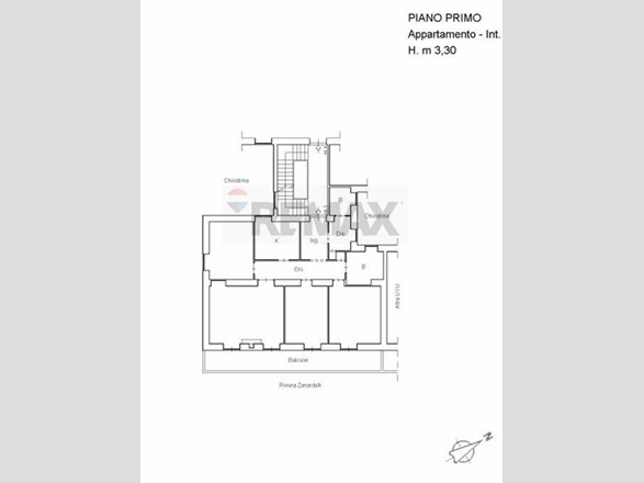 Sito al primo piano , piano secondo dalla Riviera, non ha ascensore, ma i soli 20 gradini, comodi nel salirli e scenderli non destabilizzano l'occasione di acquistare un appartamento con questo potenziale. La suddivisione è la seguente: