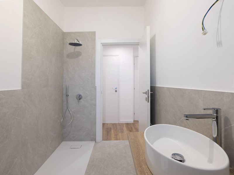 Riscaldamento a pavimento centralizzato, pavimentazione in parquet laminato in tutto lappartamento, ad esclusione del bagno dove è stato utilizzato il gres porcellanato, predisposizione per laria condizionata sia nella zona giorno che nella zona notte, serramenti in PVC con doppio vetro e anta a ribalta, controsoffitto con faretti allingresso e nel disimpegno notte. Impianti elettrico e idraulico nuovi e certificati.