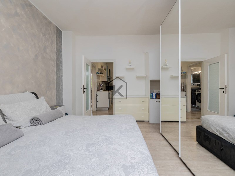 Nella tranquilla Via Natale Lucca Kers Immobiliare propone in vendita trilocale con doppia esposizione, balcone e cantina. Attualmente l'appartamento è composto da: ingresso su disimpegno, camera da letto, bagno finestrato con doccia, camera matrimoniale, soggiorno con cucina a vista e balcone. Una cantina posta al piano seminterrato completa la proprietà. Porta blindata, serramenti in legno originali, aria condizionata, pavimento in laminato, riscaldamento centralizzato con termosifoni dotati di termovalvole e contabilizzatori di calore. Stabile signorile in buono stato di manutenzione, in una zona servita da ogni tipo di attività commerciale e a pochi minuti dal centro cittadino.