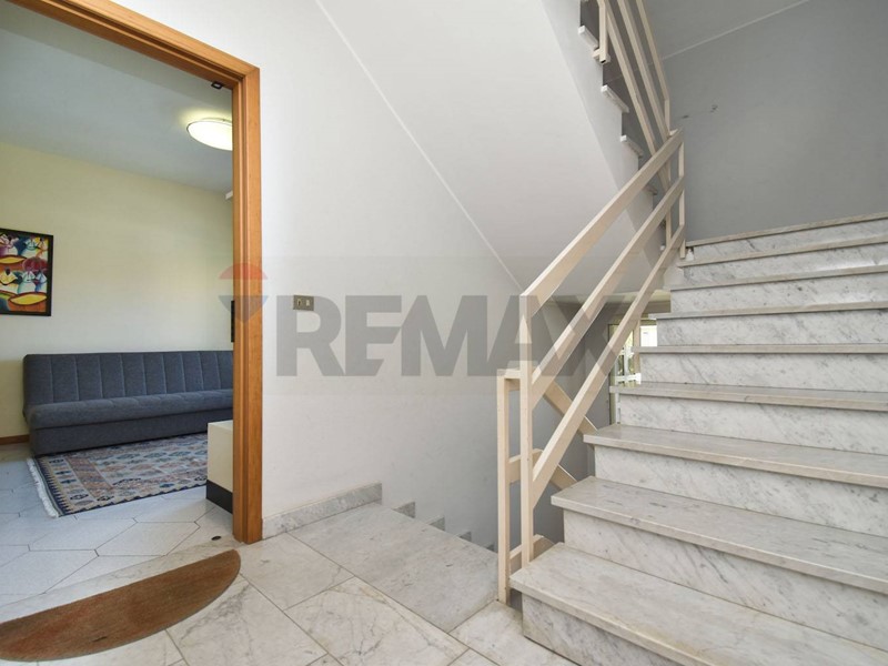 Esterno: posizione centrale sollevata da terra e riparata da un altro piano (di proprietà), che permette all'immobile di essere protetto dalla calura eccessiva e di non avere alcun problema di umidità, con balcone panoramico ed ampio terrazzo ideale per momenti conviviali. Accesso da pertinenze condominiali, ben delimitate da appositi cancelli, e giardino comune curato.