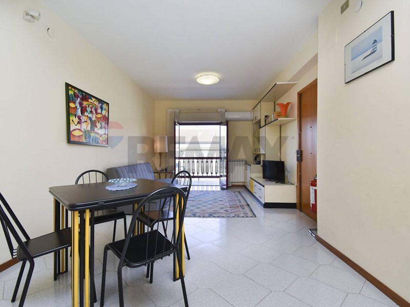 Posizione: al centro di Fondachello di Mascali, zona bar Iceberg, in complesso residenziale moderno e ben tenuto, appartamento al secondo piano, arredato, doppia esposizione, con garage (in opzione e con aggiunta di 15mila euro), ad 1 minuto a piedi dalla spiaggia libera e pochi km da Taormina e Giardini Naxos; vivibile da una famiglia tutto l'anno nonché utilizzabile come investimento per uso turistico.