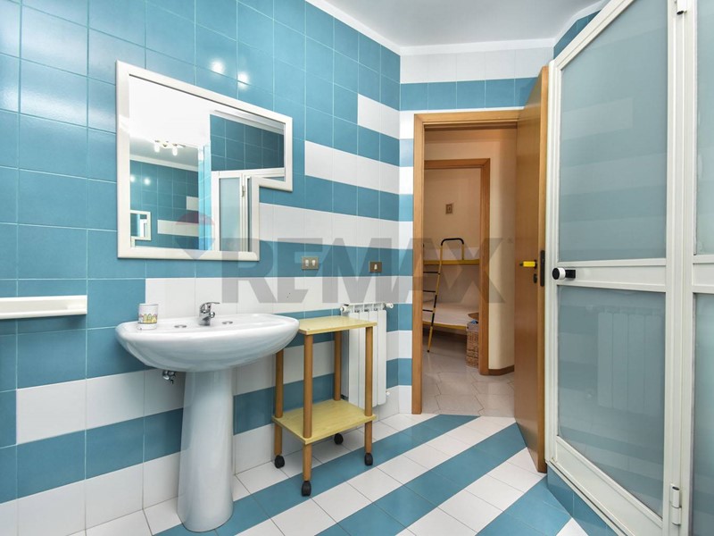 Interno: ingresso su luminosa cucina-soggiorno completa di mobili, elettrodomestici e divano; bagno completo di tutti i sanitari più boiler e finestra verso l'esterno; utilissima lavanderia completa di lavatrice; luminosa camera da letto matrimoniale con finestra vista mare e ulteriore vano con porta-finestra, adibito a cameretta con letto a castello. Ambiente climatizzato.