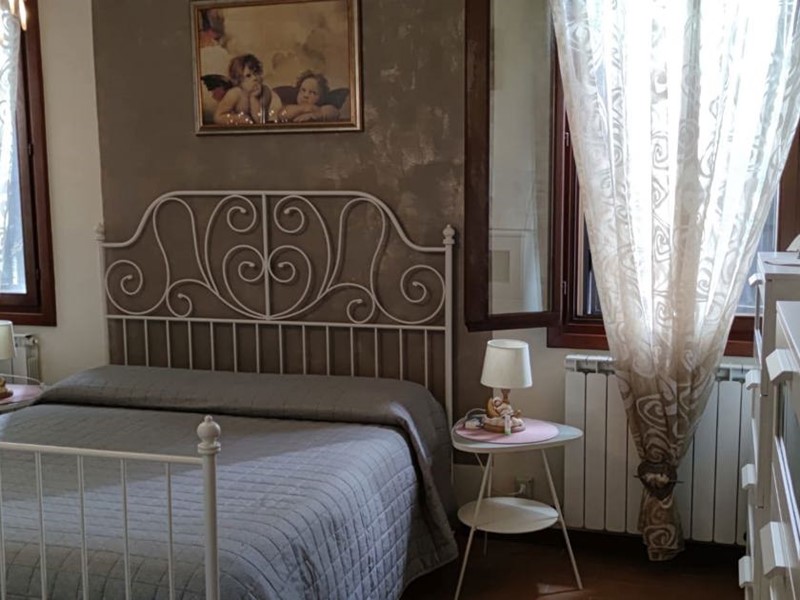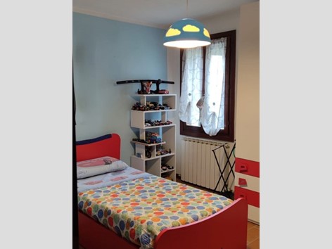 La zona notte, separata da un funzionale disimpegno, ospita una camera matrimoniale, una camera singola e un bagno dotato di box doccia.