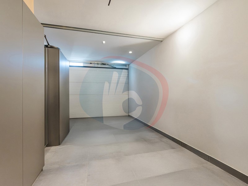 A completamento della soluzione, garage collegato fuori terra di 18 mq con ampio disimpegno/ripostiglio e posto auto scoperto riservato.