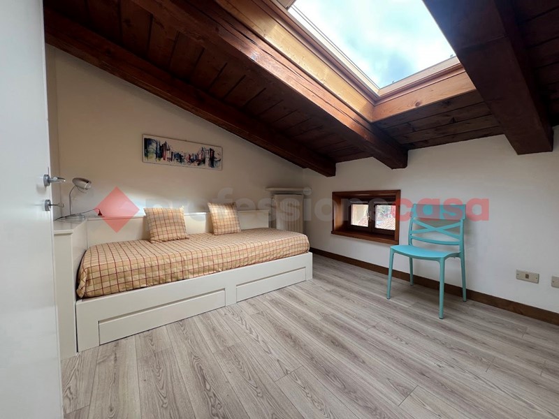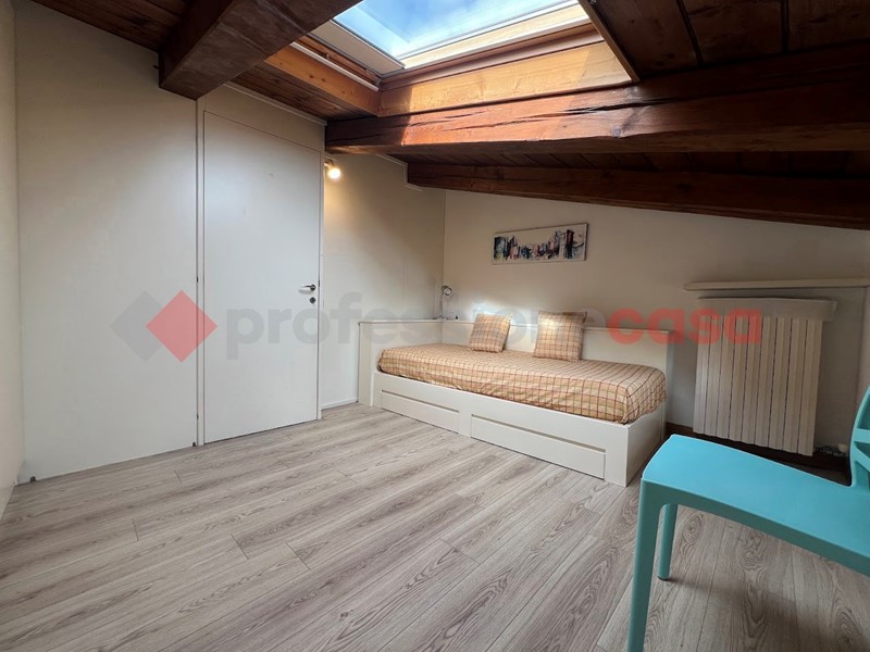 La zona notte è composta da una camera matrimoniale, una camera singola e un bagno. L'immobile è caratterizzato da parquet in tutti gli ambienti e da travi a vista, elementi tipici del centro storico che rendono gli spazi accoglienti e ben rifiniti.