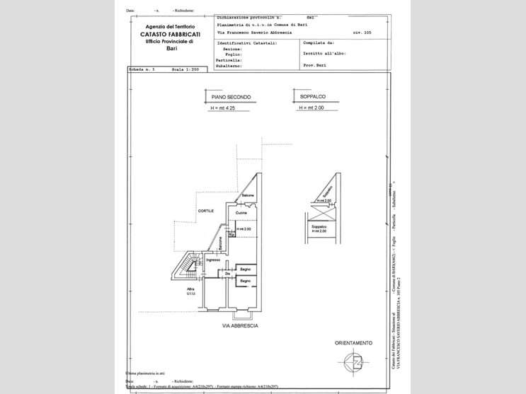 Ci accoglie l'ampio ingresso. Nella zona giorno, il salotto è un ambiente di fascino e stile, caratterizzato dalla scala che ci conduce alla zona studio posta sul soppalco; separata da un' elegante struttura in legno, la sala pranzo posta a servizio del cucinotto, moderno e funzionale, completamente arredato e corredato di elettrodomestici. La zona notte è ben disimpegnata ed è composta da due camere da letto con un balcone ed una finestra affacciati su Via Abbrescia, dove lo sguardo viene attratto dall'azzurro del mare; la camera matrimoniale ha il proprio bagno. Il bagno padronale è molto comodo. La lavanderia ed il ripostiglio sono molto funzionali.