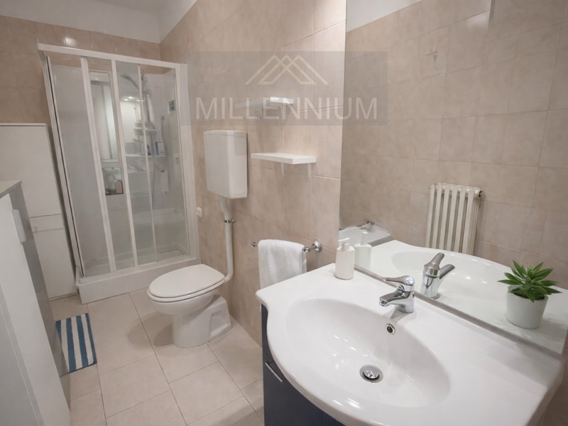 L'accesso avviene attraverso una scalinata elegante che conferisce prestigio all'ingresso. Sito al primo e ultimo piano, l'immobile è cosi' composto: un ampio soggiorno luminoso, una grande cucina abitabile (facilmente trasformabile in una terza camera), due spaziosissime camere da letto e due bagni (uno con vasca e l'altro con doccia).