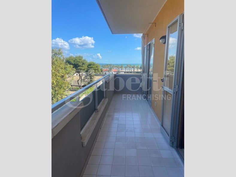 L'appartamento si sviluppa su un unico livello e vanta ingresso, cucinino, soggiorno, 2 camere da letto, bagno, ripostiglio, 1 balcone e una veranda con vista mare.