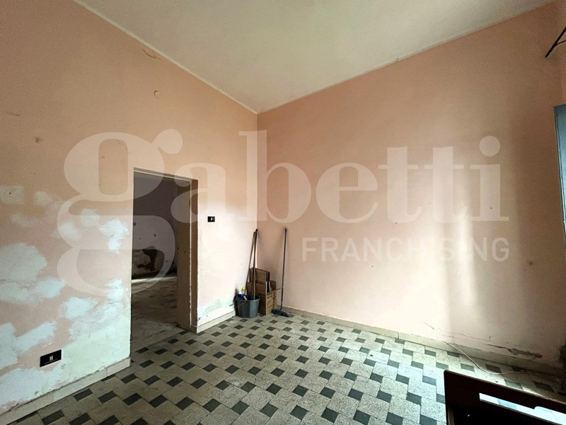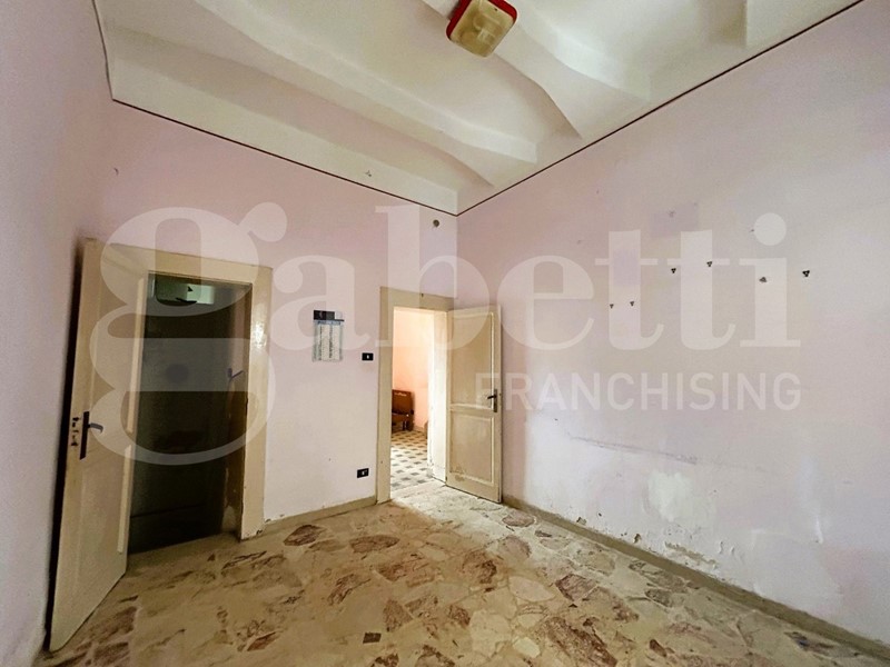 L'abitazione si sviluppa su due livelli, piano terra e piano seminterrato collegati da una scala interna. Gli ambienti sono tre, oltre bagno, cucina e due balconi. Le condizioni interne necessitano di interventi di ristrutturazione.