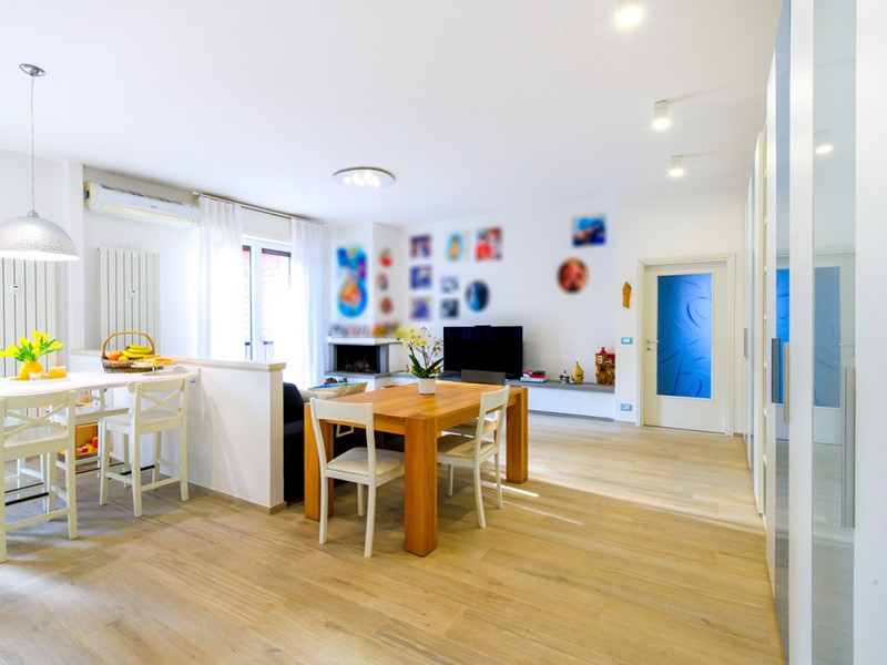 L’appartamento è dotato di aria condizionata e si completa con cantina ciclabile e garage.
