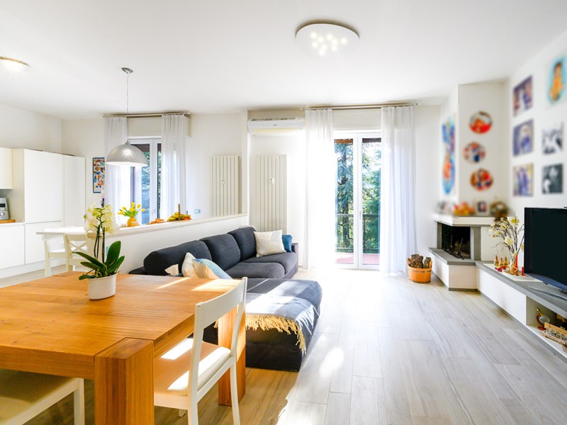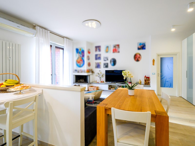 Il soggiorno ampio e accogliente, con camino, è il vero cuore della casa: uno spazio da vivere in ogni stagione, reso ancora più speciale dalle due porte-finestre che conducono al terrazzo, ideale per momenti di relax all’aperto. La zona notte è composta da due camere matrimoniali e da un bagno finestrato elegante e funzionale.